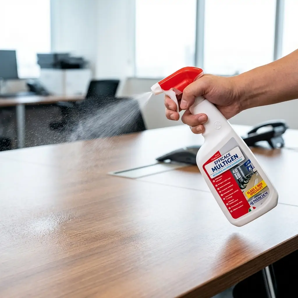 Έτοιμο προς χρήση αρωματικό απορρυπαντικό για καθαρισμό όλων των πλενόμενων επιφανειών όπως γραφεία, τραπέζια, καρέκλες, πόρτες, γυαλί, καθρέφτες, παράθυρα, κλπ. χωρίς να απαιτείται ξέβγαλμα. Ιδανικό για καθημερινή χρήση σε γραφεία, νοσοκομεία, γηροκομεία, ξενοδοχεία, ιδρύματα, σχολεία, νηπιαγωγεία, κτλ.