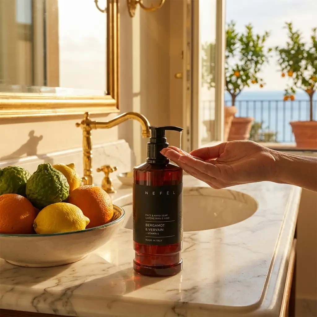 Πλούσια αρωματισμένο υγρό σαπούνι για καθαρισμό των χεριών, με εκχυλίσματα γλυκερίνης, άφηνει τα χέρια απαλά και με αρωματισμένα. Ένα άρωμα με βάση το φρέσκο του περγαμόντου, του λεμονιού και του πορτοκαλιού που συναντά την πικάντικη κανέλα και την κομψότητα της βερβένας, σας ταξιδεύουν στην καρδια της Σικελίας